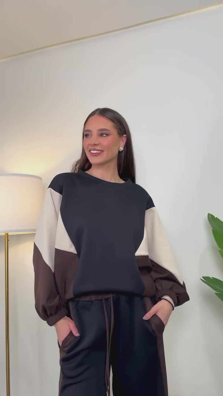Felpa dal taglio morbido con maniche a contrasto e girocollo rifinito.